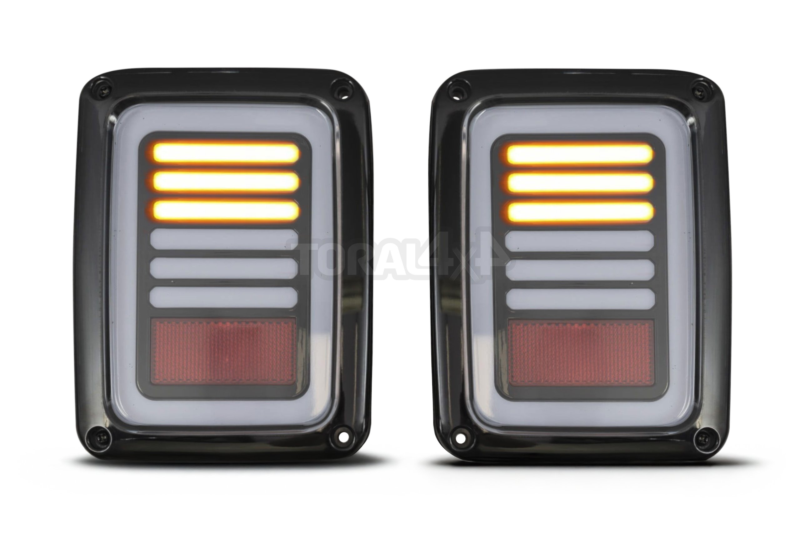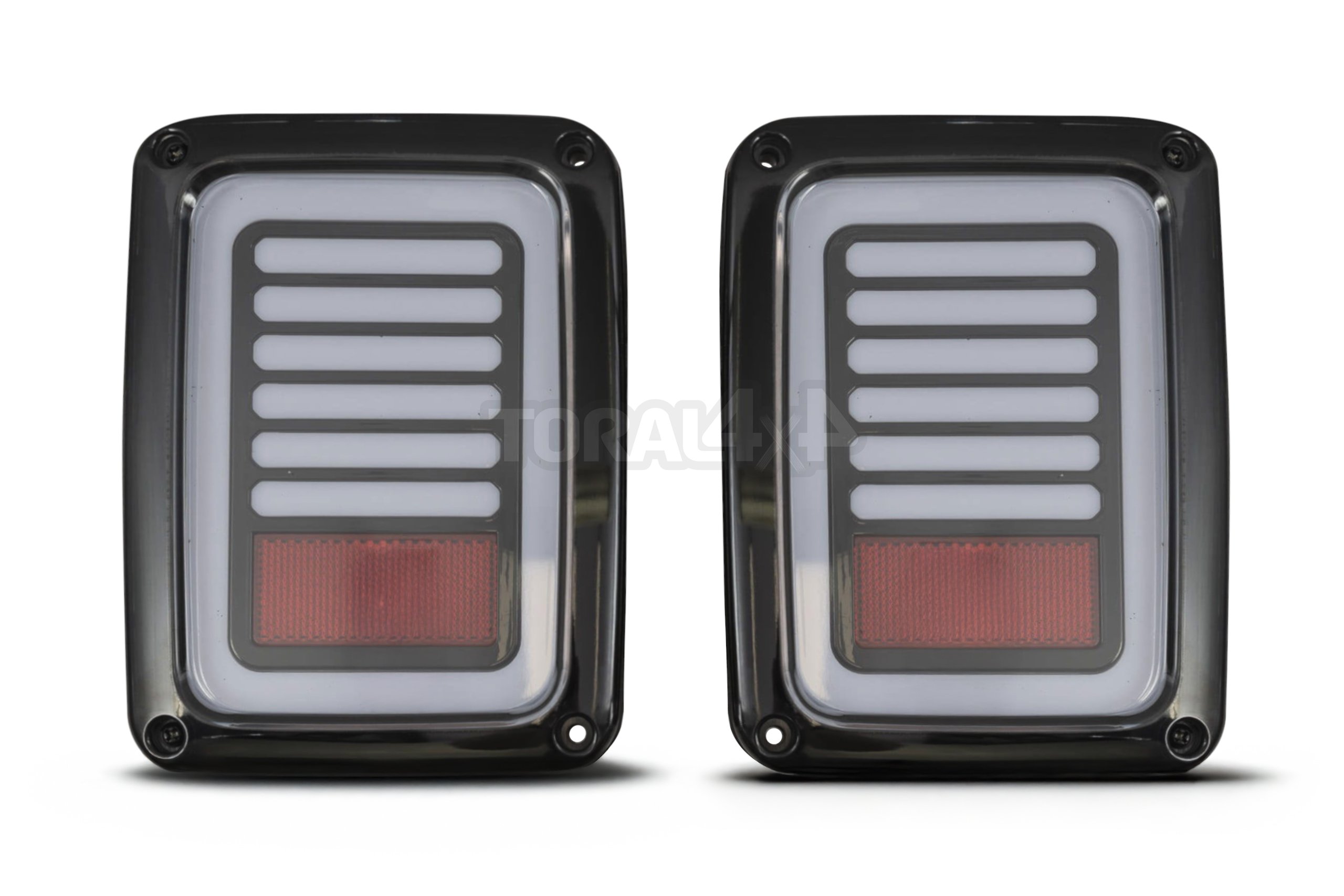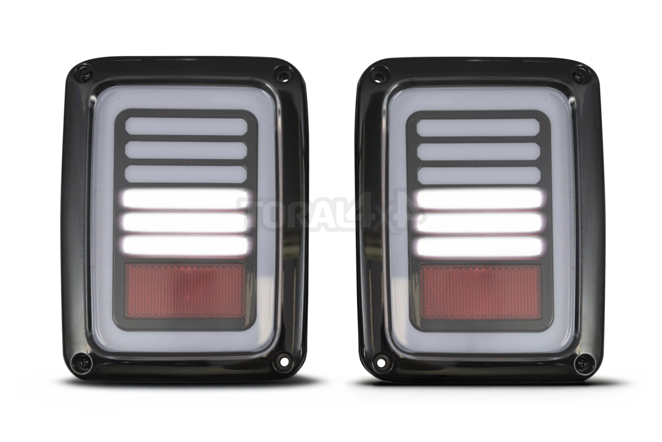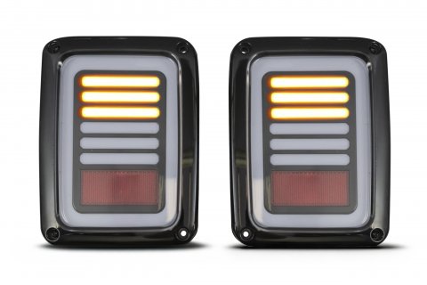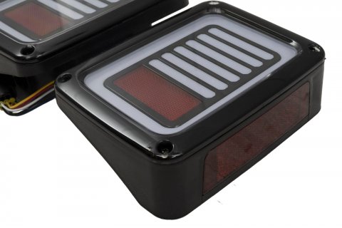 Tuningové zadní světla, vyrobené technologií LED, určené pro JEEP WRANGLER JK 2007-2018 (evropská verze), model „Knight“.