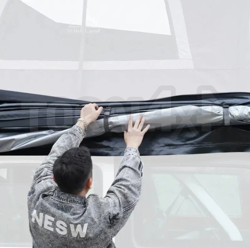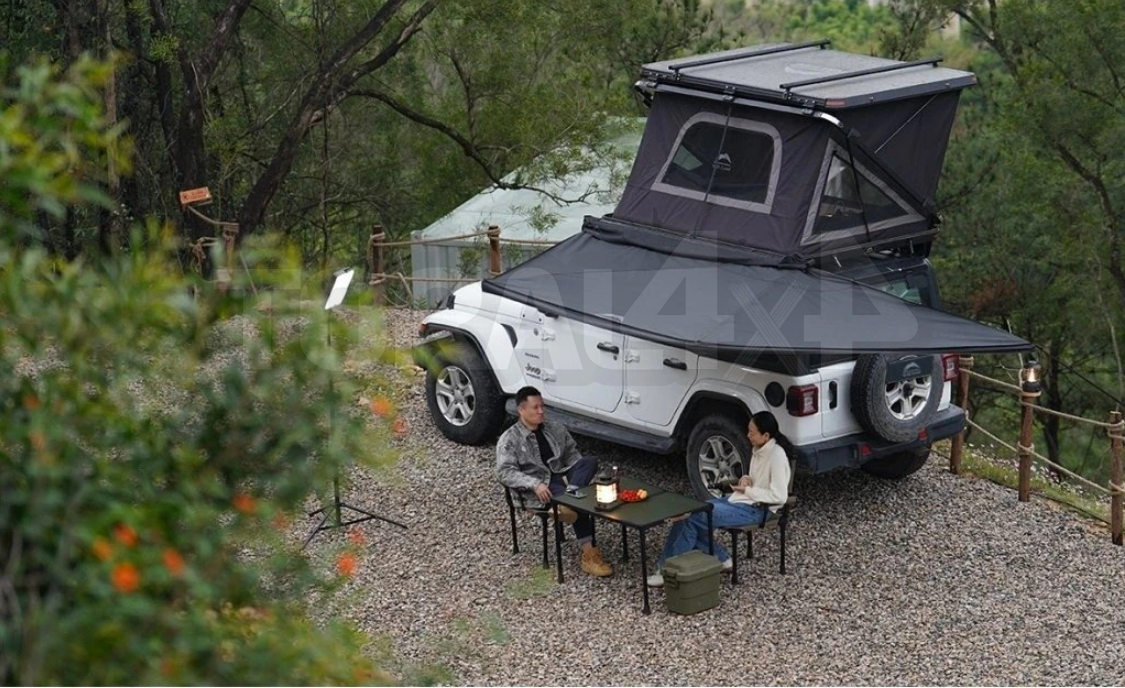 Markýza je vyrobena z lehkých, ale zároveň odolných hliníkových ramen a je kompatibilní se širokou škálou střešních nosičů, což zaručuje snadnou instalaci na téměř každý vůz.