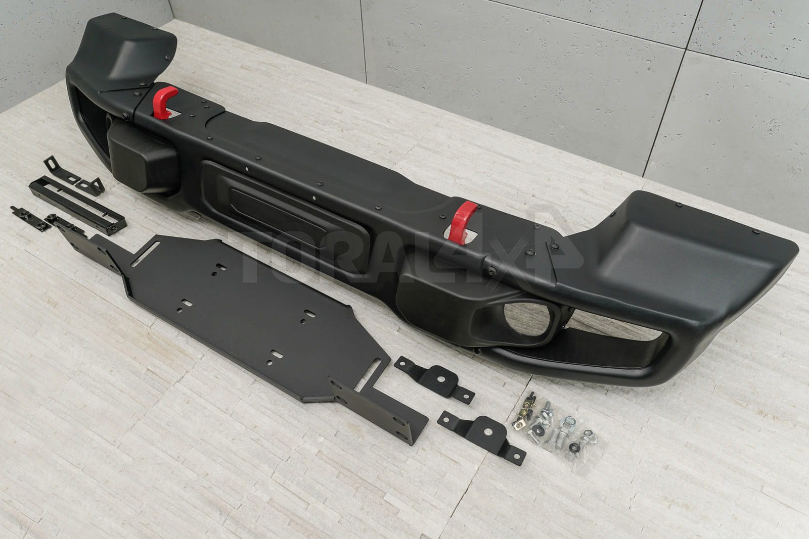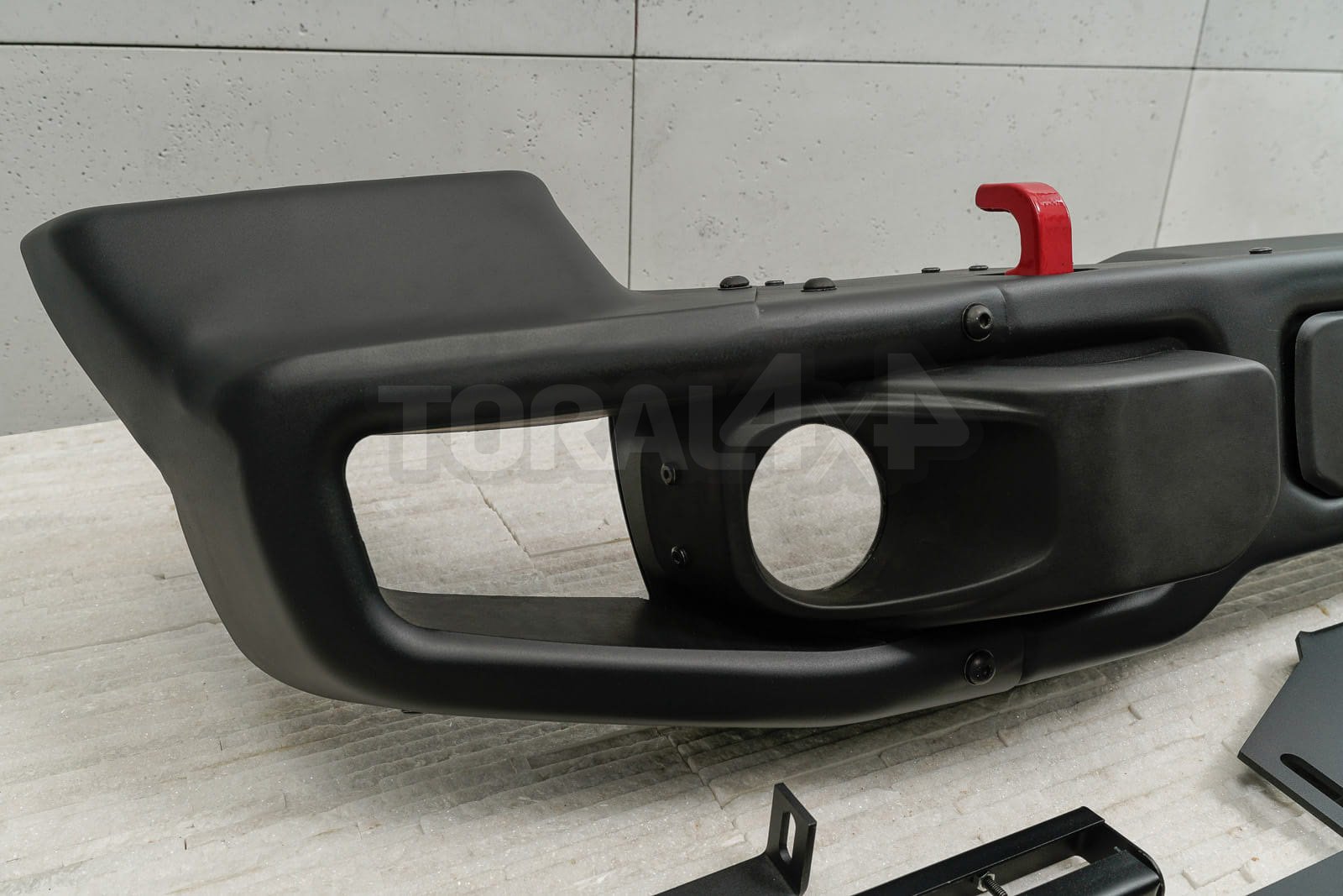 To je modulární nárazník ; je možné demontovat boční ocelové prvky, což umožňuje zvýšení světlé výšky a zlepšený nájezdový úhel. Nárazník má montážní prostor a desku pro elektrický naviják, červené tažné háky na třmeny, výklopný držák SPZ, kovové rámečky pro mlhovky a přídavné držáky pracovních svítilen.