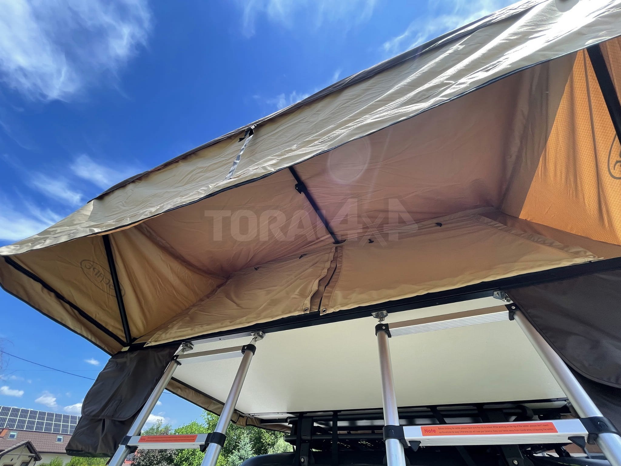 Střešní stan nejvyšší kvality. Zkušenosti získané během expedic umožnily zavedení různých vylepšení, která se v továrních sériových produkcích marně vyskytují.