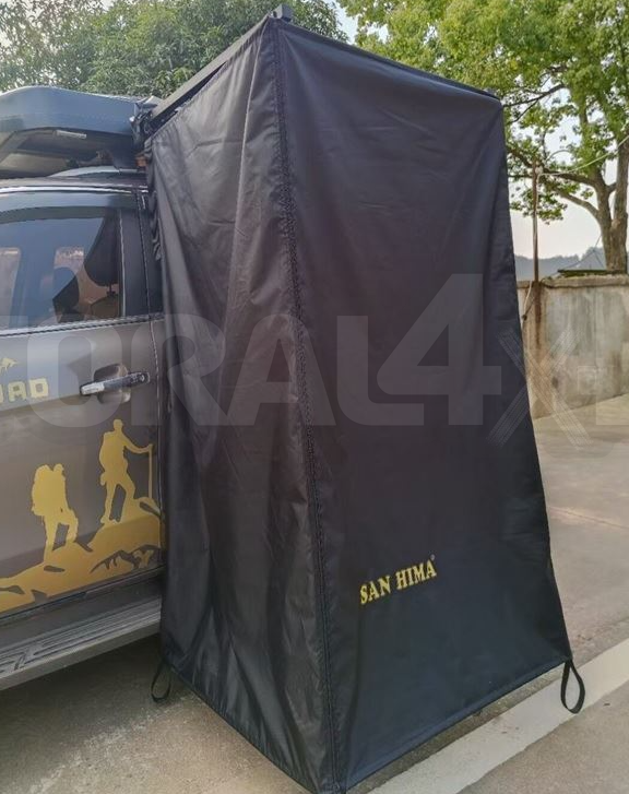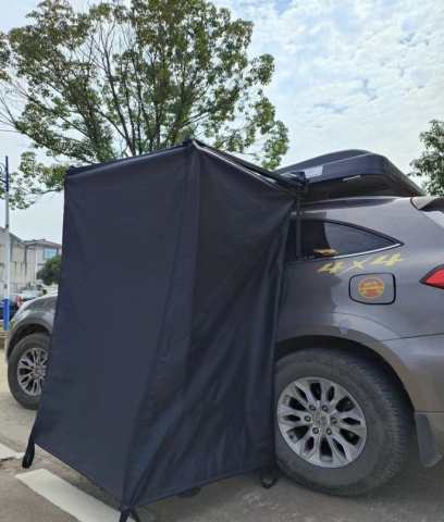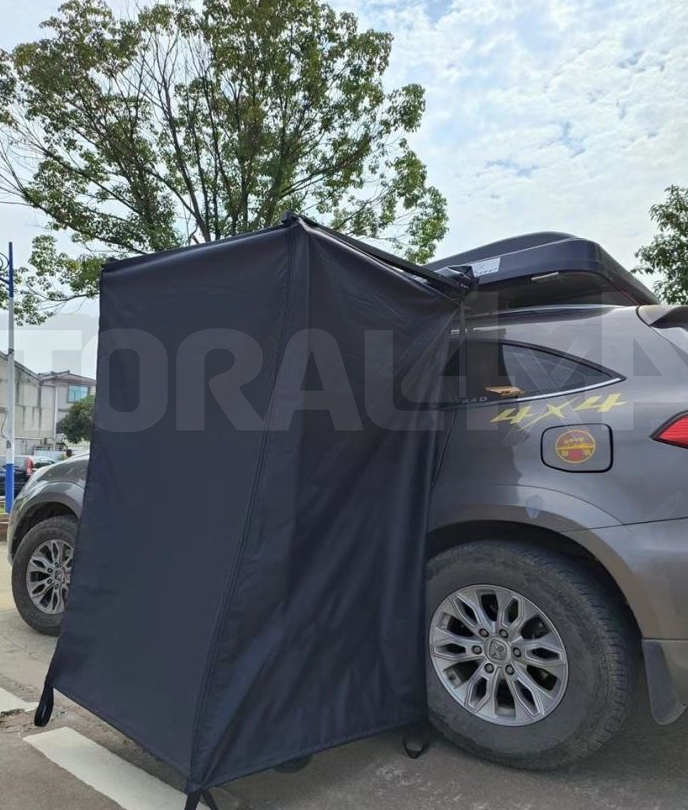 Rychleschnoucí sprchový závěs z materiálu Oxford, zatížený na spodní části, aby si udržel tvar.