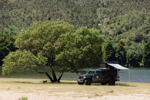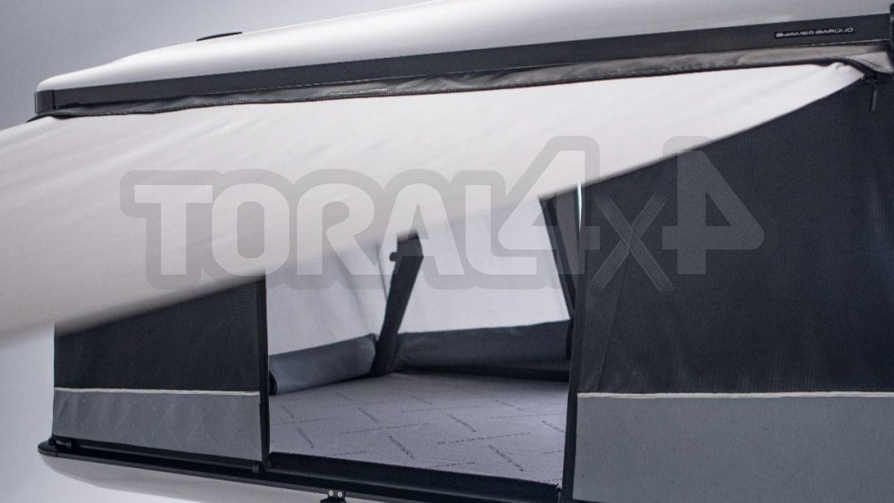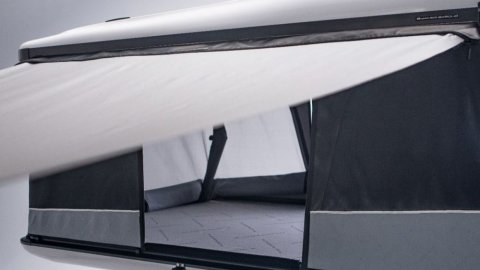 Díky připevnění na horní skořepinu stanu ze série Frontier, například střešní stan Odyssey, můžete rovně stát pod markýzou bez omezení výšky i když stan používáte na nízkém osobním autě.
