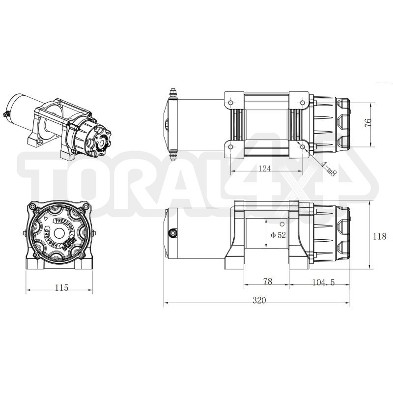 Rozměry navijáku (D x Š x V): 320 mm x 110 mm x 115 mm