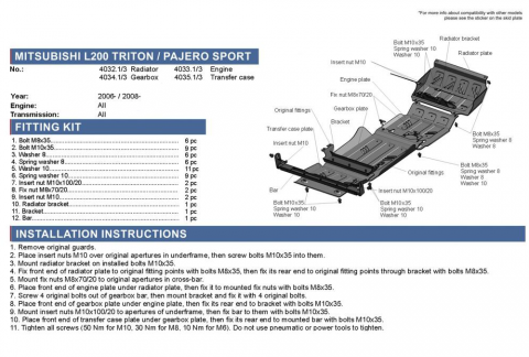 Ocelový kryt rozdělovací převodovky pro Mitsubishi L200 / Triton KAOT, 2,5TD, od r.v. 2007-2015 ; tloušťka: 3 mm
