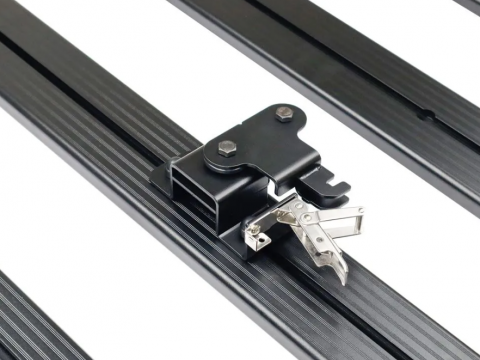 Jakmile jsou tyto držáky nainstalovány na nosič Front Runner Rack, nejsou k sejmutí nebo instalaci střešního stanu potřeba žádné nástroje.