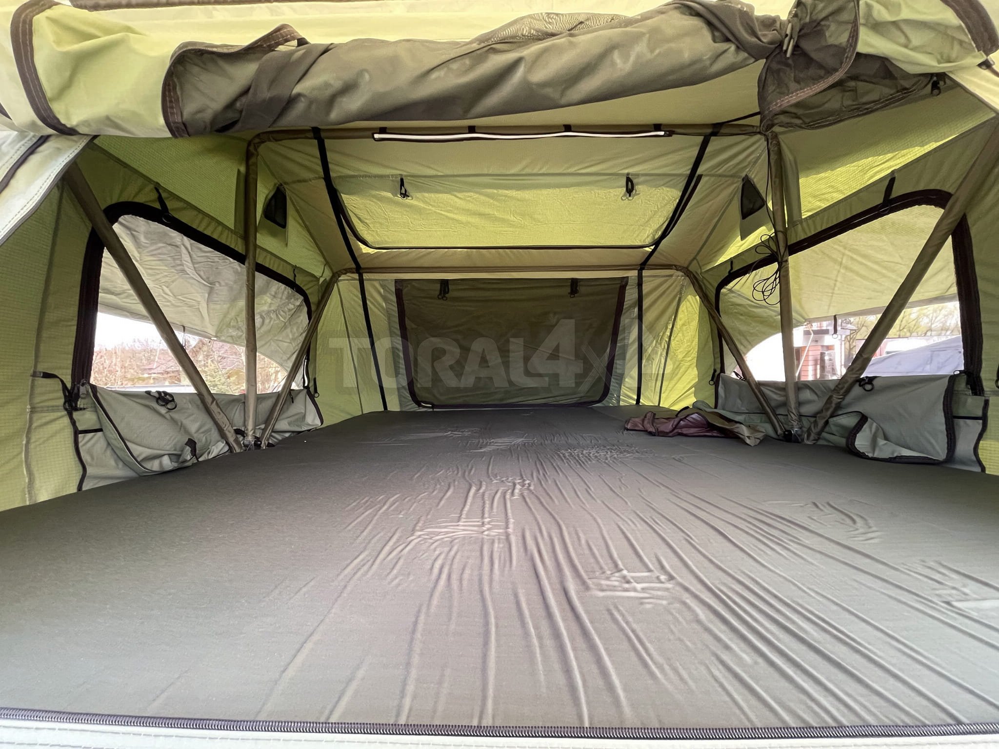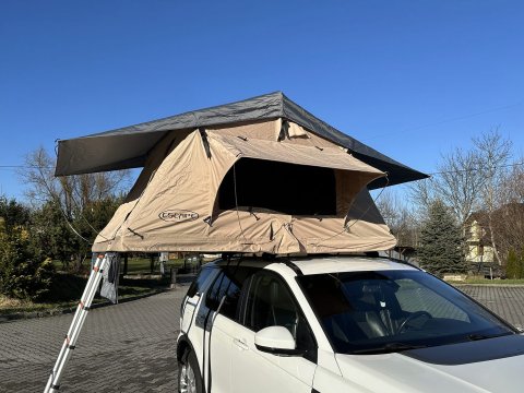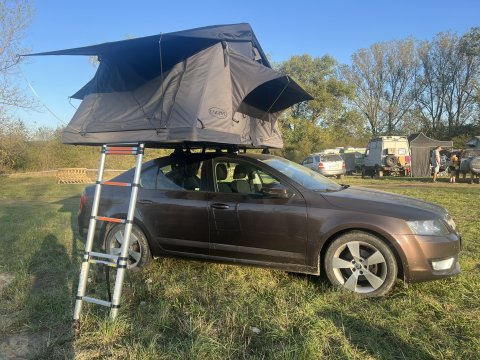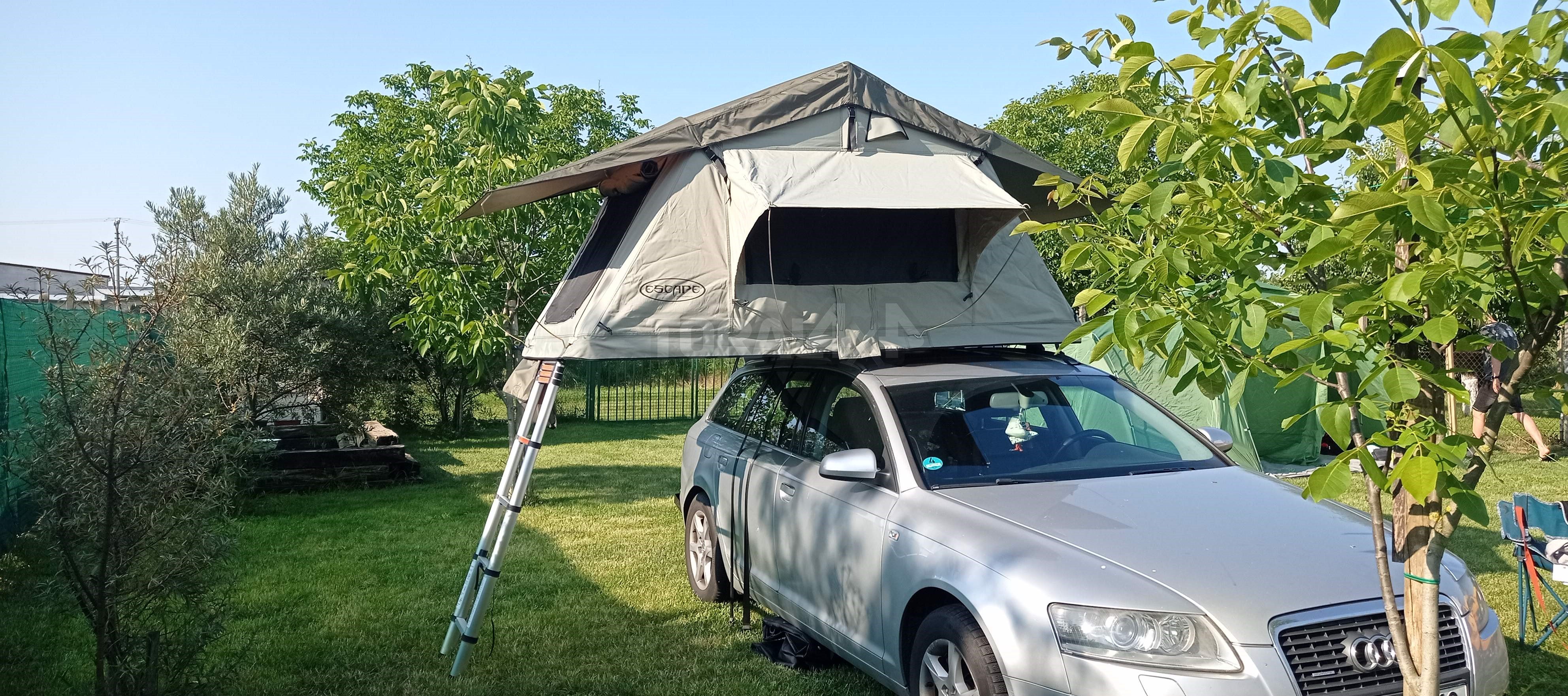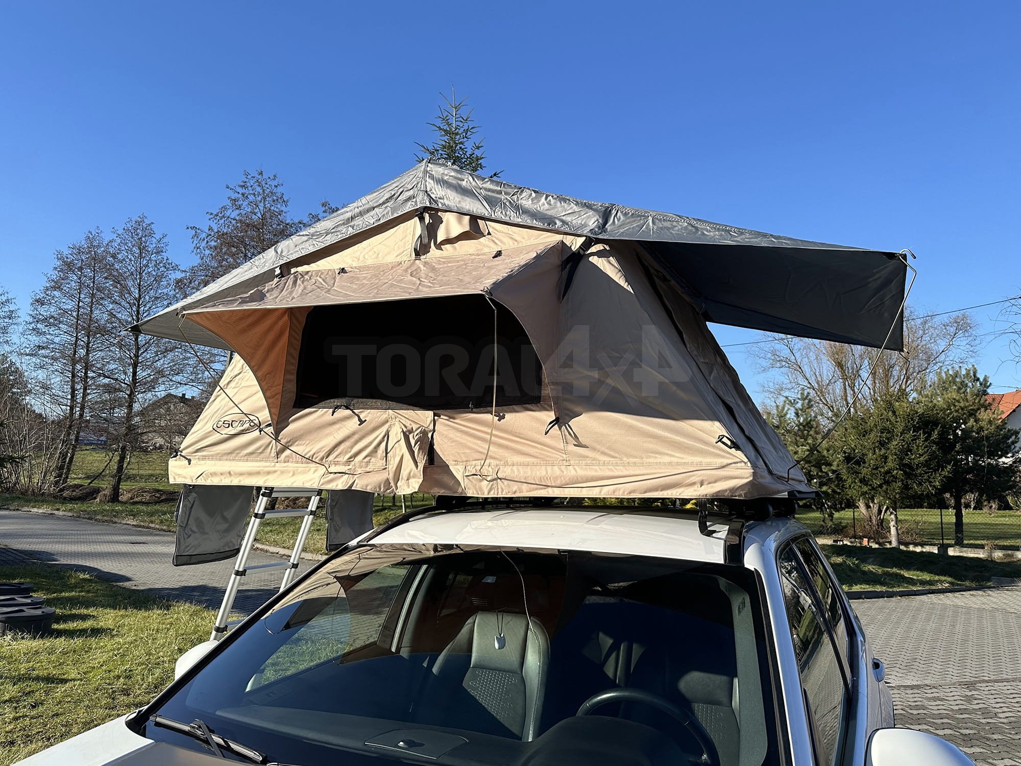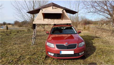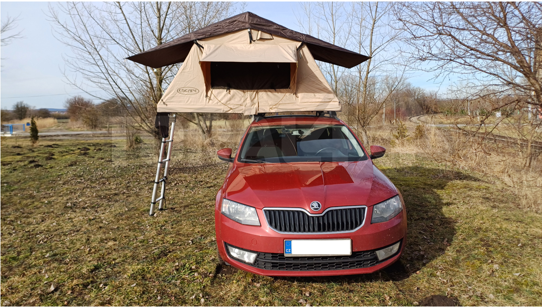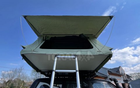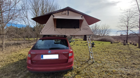 Střešní stan nejvyšší kvality. Zkušenosti získané během expedic umožnily zavedení drobných vylepšení, která se v továrních sériových produkcích nenacházejí.