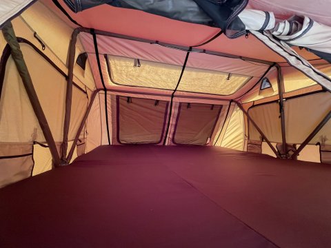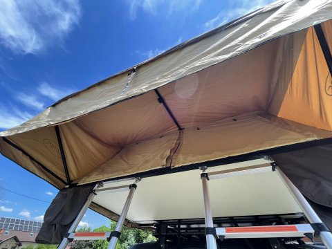 Střešní stan nejvyšší kvality. Zkušenosti získané během expedic umožnily zavedení různých vylepšení, která se v továrních sériových produkcích marně vyskytují.
